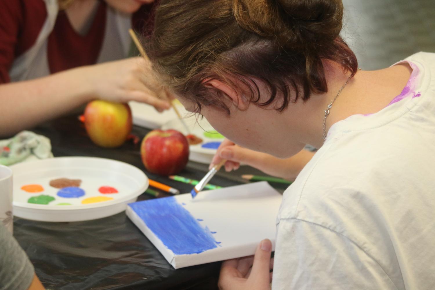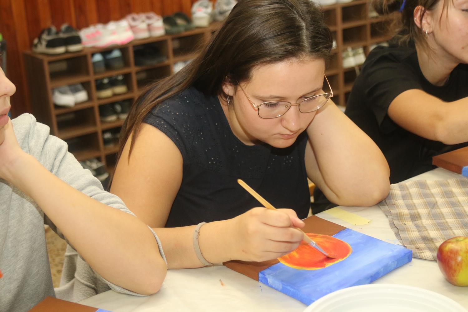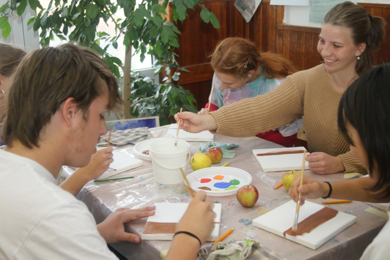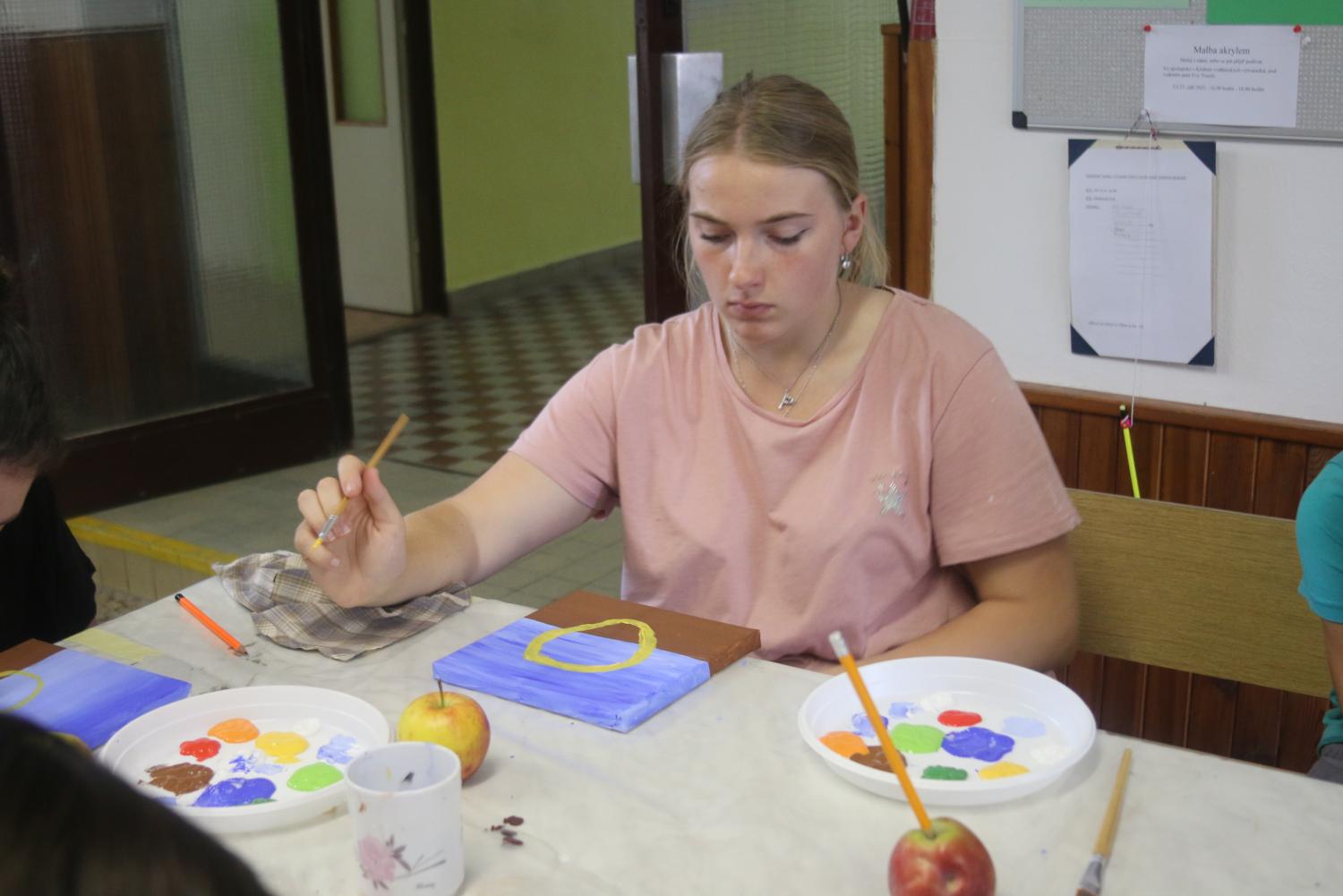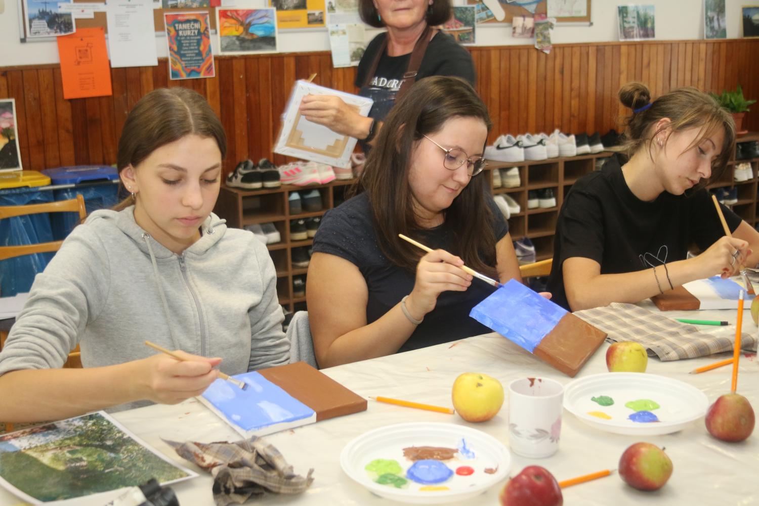 Malování akrylem s malířkou Evou Veselou, členkou Klubu vodňanských výtvarníků za podpory Městského muzea a galerie Vodňany pro studenty SOUs Vodňany a TRIVIS.
